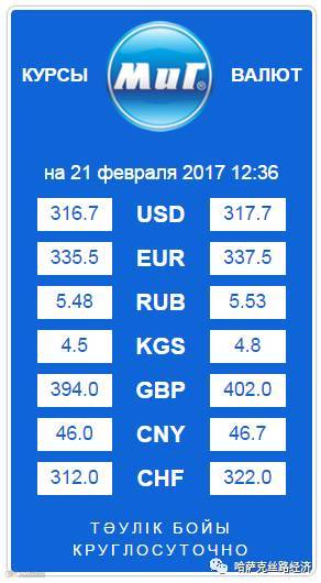 【обменный курс】2017年2月21日哈萨克斯坦坚戈汇率