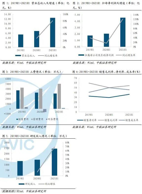 公司发布2021年中报,2021年上半年公司实现营业收入(12.51亿元,+80.56%),归母净利润(4.54亿元,+121.25%),扣非后归母净利润(4.48亿元,+125.45%),毛利率(54.26%,+4.20pcts)。