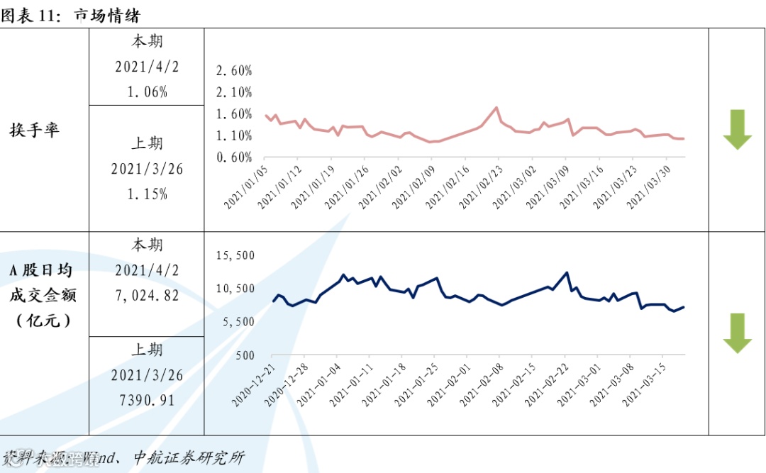 市场情绪方面,本周日均换手率为1.06%,较上周的1.15%有所下降。A股日均成交金额为7024.82亿元,较上周的7390.91亿元有所回落。