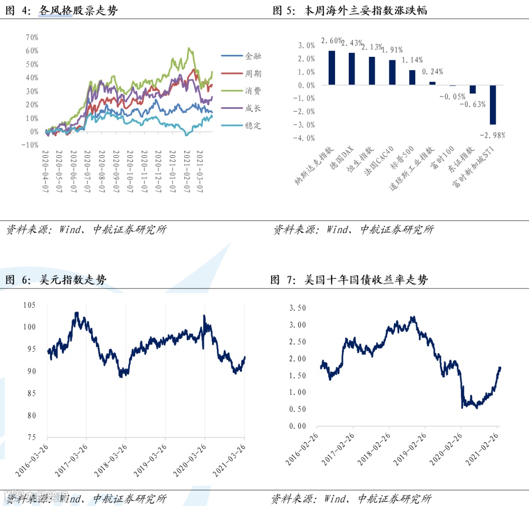 投资策略方面,本周全球主要股票市场集体上涨,投资者风险偏好回升,本周公布的PMI数据显示制造业复苏预期乐观,推动A股市场回暖。自春节以来市场的谨慎情绪逐渐发酵,最近有所缓和,美国总统拜登宣布了基建计划引发美股反弹,但是基建计划的公布大概率会继续推升美债收益率和美元汇率,进一步成为中期压制因素,新一轮的上涨仍缺乏基础。在货币政策趋稳的情况下,市场的关注重心将从流动性转向基本面,我们建议继续关注中小盘价值因子的结构性机会。