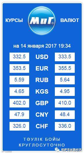 【обменный курс】2017年1月15日哈萨克斯坦坚戈汇率