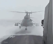 香港东网2月16日报道称,事发于本周三,根据货车司机拍摄的片段,可见高速公路上出现一架军方米-8武装直升机,阻挡货车车队。正当司机摸不着头脑之际,一名男子步出直升机走向货车。原来直升机“迷路”,机员只好查问货车司机,如何前往阿克图比。