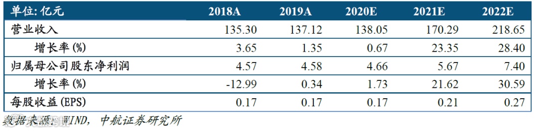 基于以上观点,我们预计公司2020-2022年的营业收入分别为138.05亿元、170.29亿元和218.65亿元,归母净利润分别为4.66亿元、5.67亿元、7.40亿元,我们给予目标价格11.05元,对应2020-2022年的PE为65倍、53倍、41倍。