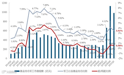 图表3:2021一季度军工行业基金持仓规模和比例情况