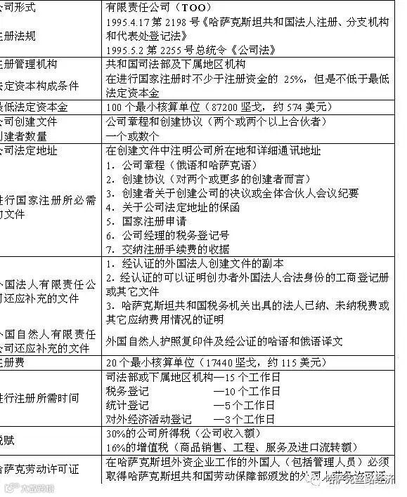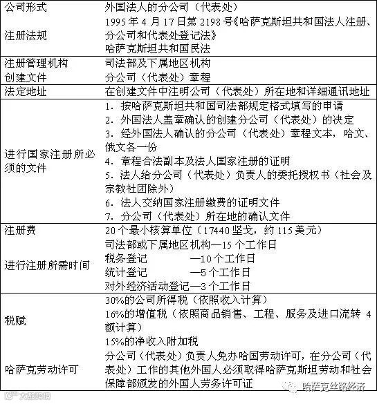 哈萨克斯坦注册外资企业及分公司(代表处)须知