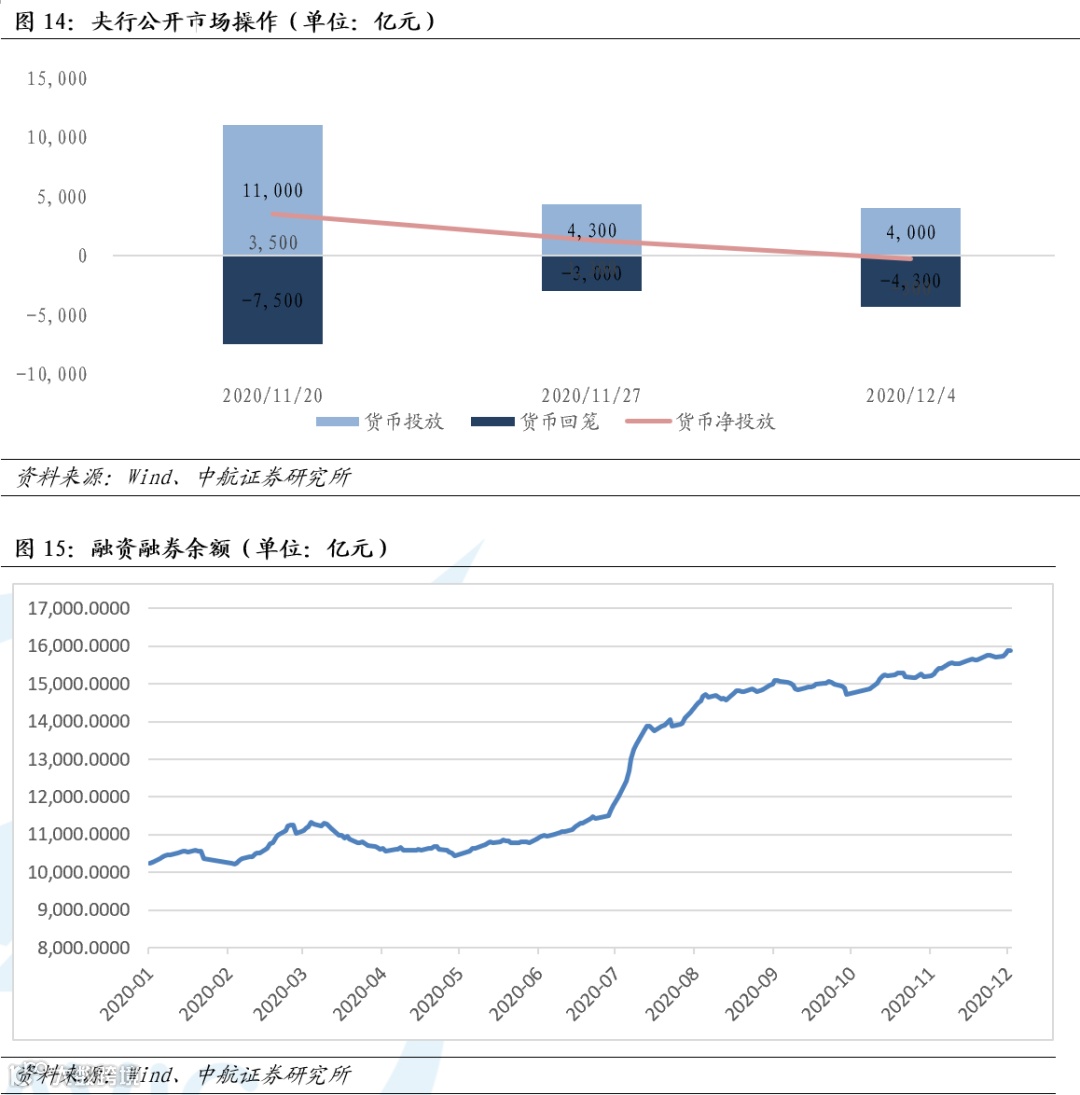 2020年11月30日,央行公告称,为维护月末流动性平稳,2020年11月30日进行2000亿元MLF投放。此外,央行预告将于12月15日开展中期借贷便利(MLF)操作(含对12月7日和16日两次MLF到期的一次性续做),具体操作金额将根据市场需求等情况确定。我们认为,央行打破惯例,罕见在月末利用MLF大幅释放流动性,主要用意包括:对冲近期永煤债违约造成的流动性紧张;平抑中期利率、缓释近期银行因同存利率上升面临的资金成本压力;对冲12月中上旬合计1.14万亿的流动性到期;央行11月底提前释放流动性,能够与12月下旬财政集中投放错开,有助于货币市场的平稳。总体上,在经济运行趋于平稳的情况下,央行货币政策仍将以稳健中性、维护市场平稳为主。