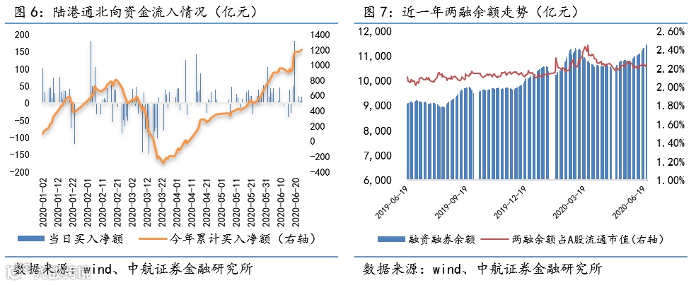经纪:A股本周日均成交额7717亿元,较上周+2.98%,6月日均成交额环比+16.05%,同比+57.38%,截至5月年内累计成交额同比+22.50%;本周陆港通北向资金净流入48亿元,较上周-156亿元。
