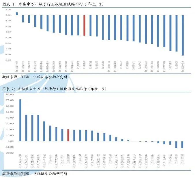 上周,传媒(申万)板块指数收于818.51点,周涨跌幅为-3.66%,行业(申万)排名12/28。