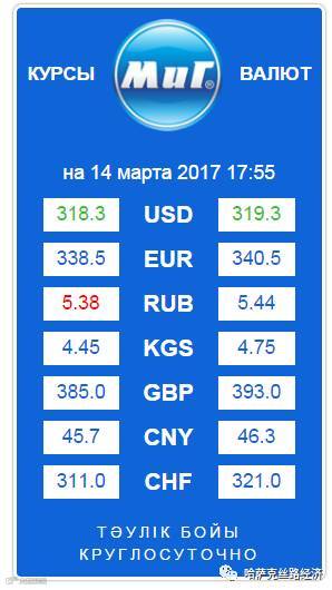 【обменный курс】2017年3月14日哈萨克斯坦坚戈汇率