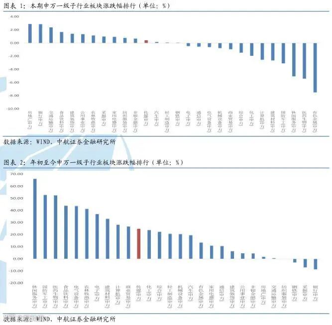 上周,传媒(申万)板块指数收于848.73点,周涨跌幅为+0.41%,行业(申万)排名12/28。