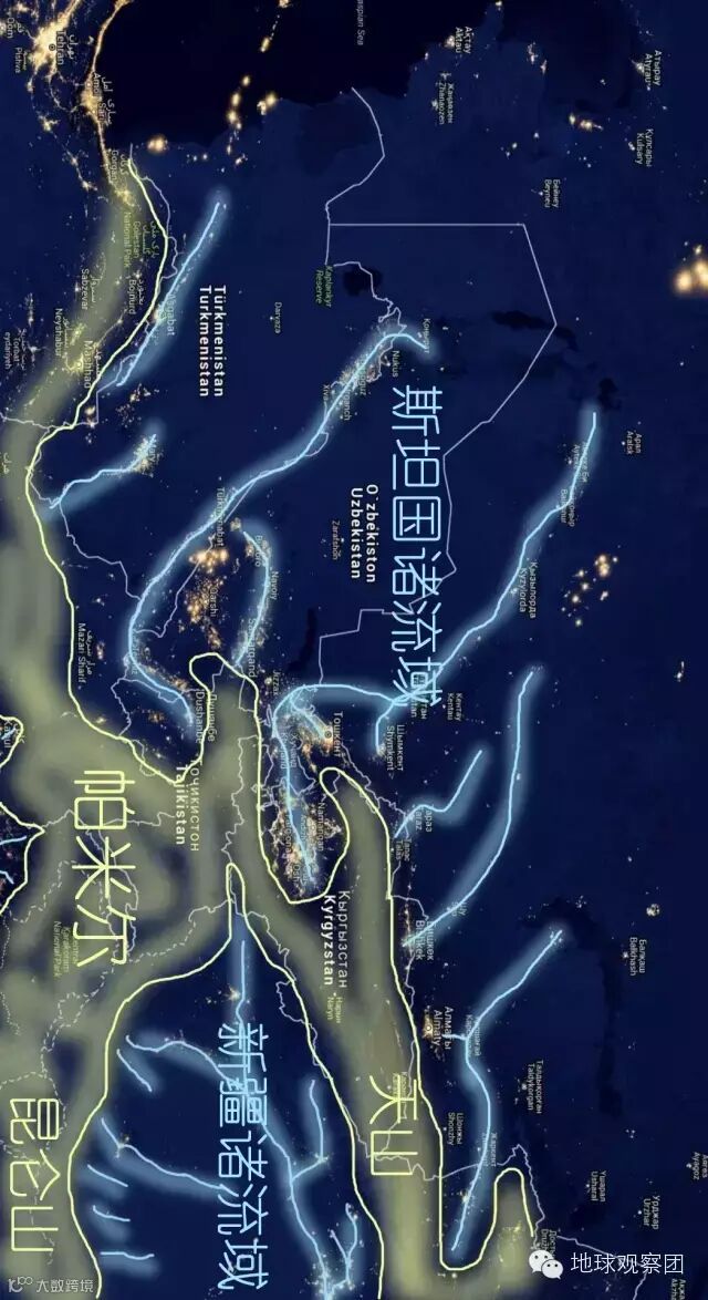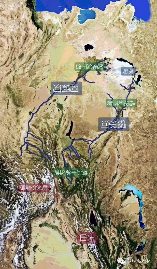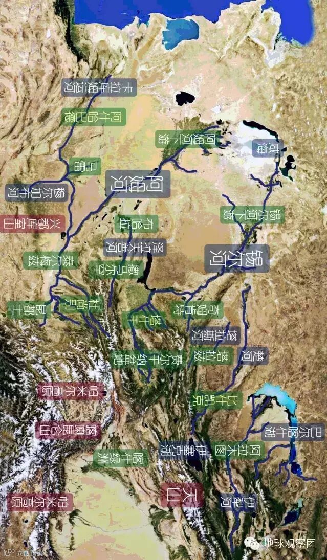 当然,中亚地区不止这两条河,东侧的高山高原(尤其是天山和帕米尔高原)孕育了众多河流,体量较大的有:伊犁河、楚河、塔拉斯河、锡尔河、泽拉夫善河、阿姆河(自北至南)。