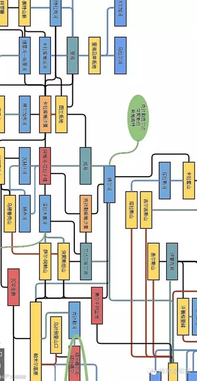 对于斯坦国这众多山山水水之间的具体关系,由于天山、帕米尔高原及其西侧山区都是一组组山脉,关系颇为复杂,我团确实整理了一番,喜欢细究的朋友可私信探讨,不细究的可跳过下面这张图。