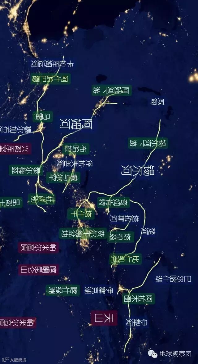 当然,这些灯光都是集中在大河沿岸的。东部高山高原的水源虽然不能覆盖整个斯坦国地区,但其东南部明显是颇受滋润的。