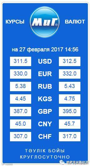 【обменный курс】2017年2月27日哈萨克斯坦坚戈汇率
