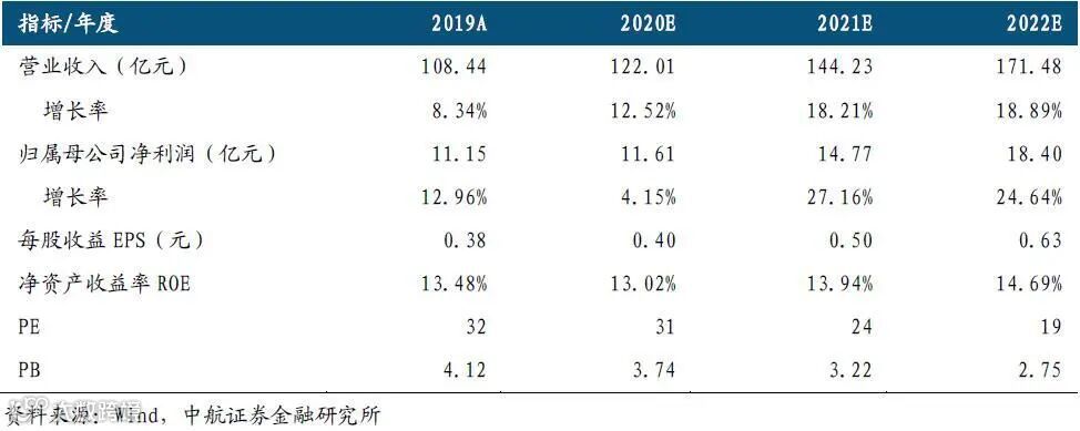 我们预计公司2020-2022年归母净利润分别为11.61亿元,14.77亿元和18.40亿元,EPS分别为0.40元,0.50元和0.63元,对应PE分别为31、24、19倍,给予“持有”评级。