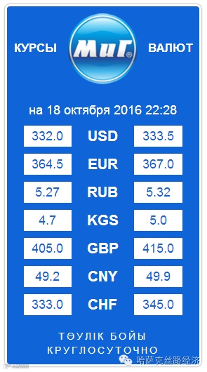 【обменный курс】2016年10月19日哈萨克斯坦坚戈汇率