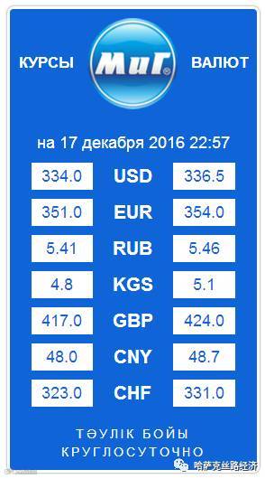 【обменный курс】2016年12月18日哈萨克斯坦坚戈汇率
