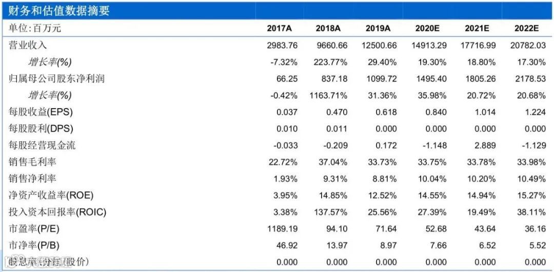 2019年年报:2019 年公司实现营收125.01亿元(yoy+29.40%),归母净利润 11.56亿元(yoy+33.59%),扣非归母净利润10.93亿元(yoy+280.09%)。