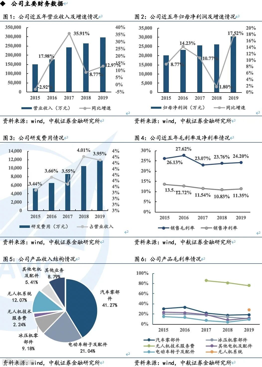 公司双主业都有客户基础稳定的特点:电机方面,由于电机零部件需要第三方和第二方认证,电机整机厂一般不轻易改变供应商。公司已与国内外众多大型电机电器厂商建立了长期合作关系,如法雷奥(Valeo)、博世(Bosch)、电装(Denso)等。无人机方面,公司控股子公司天宇长鹰是国内无人机定点研制单位,产品已列装海军、空军、战略支援部队十余年。公司面向军方客户及军贸公司进行直销,与国防军工相关部门建立了密切合作关系。同时,公司天鹰BZK-005E无人机2018年已获军品出口立项,客户群有望进一步拓展。