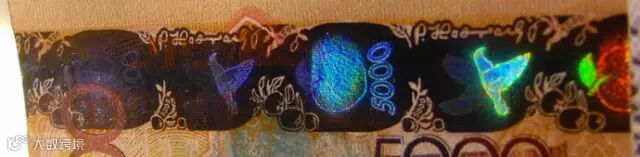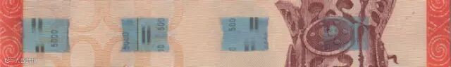 新版5000坚戈最大的亮点即为正面宽度达6mm的安全线。这个宽度是当今世界各国纸钞中所见最宽者。