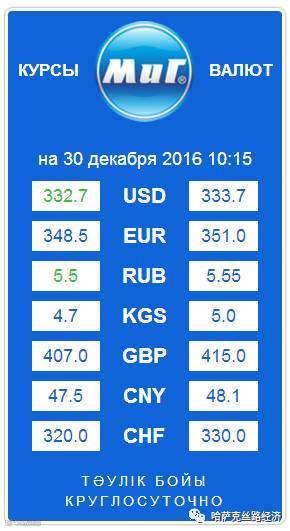 【обменный курс】2016年12月30日哈萨克斯坦坚戈汇率