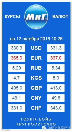 【обменный курс】2016年10月12日哈萨克斯坦坚戈汇率