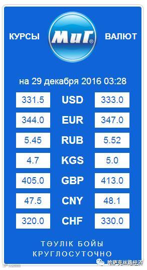 【обменный курс】2016年12月29日哈萨克斯坦坚戈汇率