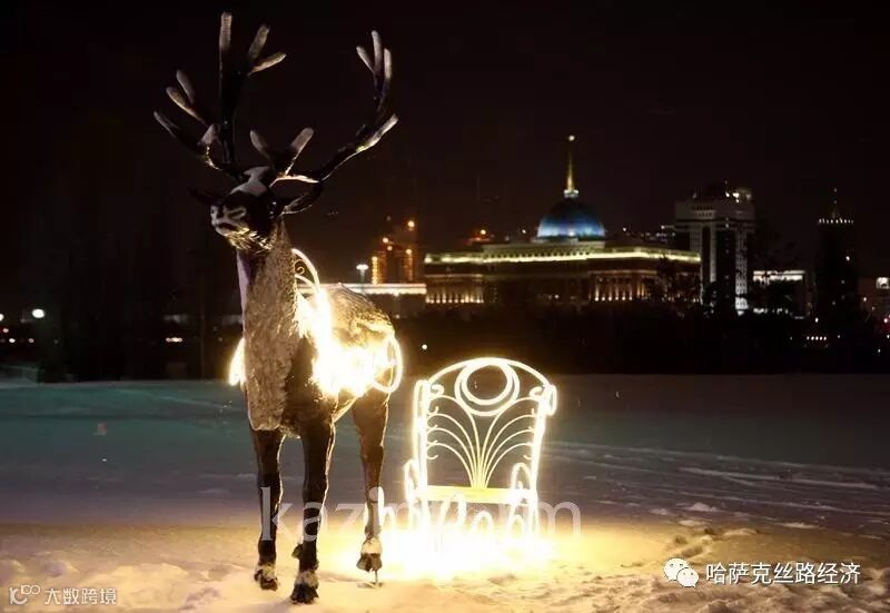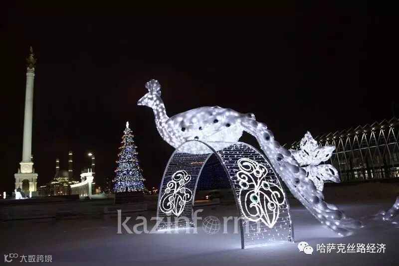 今年,我们将以蓝色为主展开修饰工程,迎来新的一年。" 目前,相关人员已在阿斯塔纳市部分景点布置了魔幻孔雀、圣诞麋鹿等20多种不同冰雕,并在"哈萨克耶勒"纪念碑、 卫国将士广场、学生宫等主要广场建造了喷泉,使原本就秀丽的阿斯塔纳城市风景焕然一新、充满活力,更加鲜艳动人,令市民纷纷称赞。