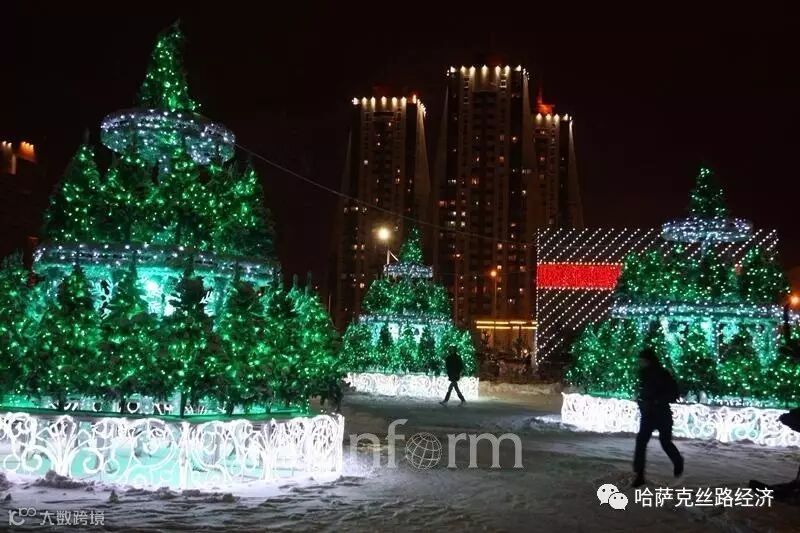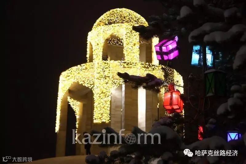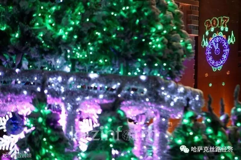 哈通社阿斯塔纳 -新年即将到来之际,阿斯塔纳相关部门已在首都树立37棵圣诞树,并为阿斯塔纳市主要景点进行修饰美化,使之充满魔幻色彩。