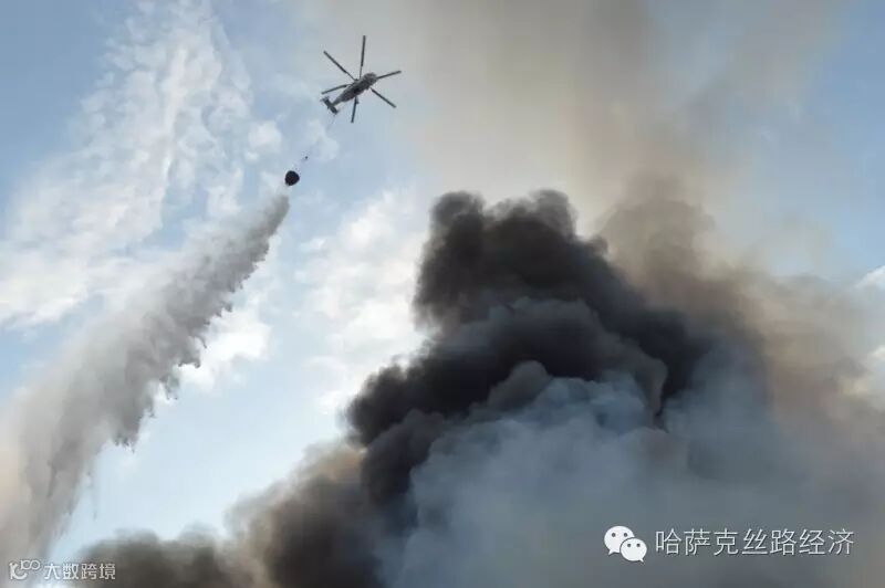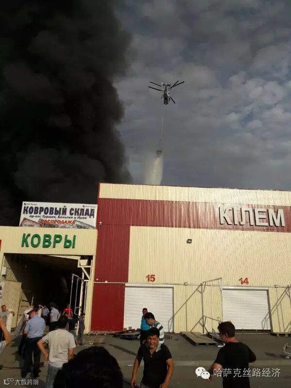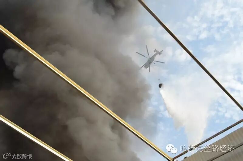 阿拉木图批发市场大火成功扑灭 市政府动用直升机灭火