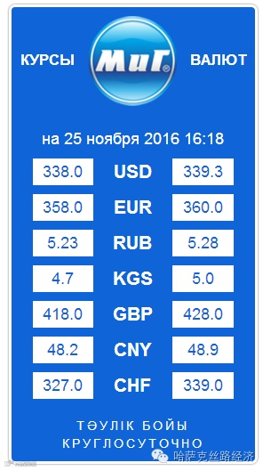 【обменный курс】2016年11月25日哈萨克斯坦坚戈汇率