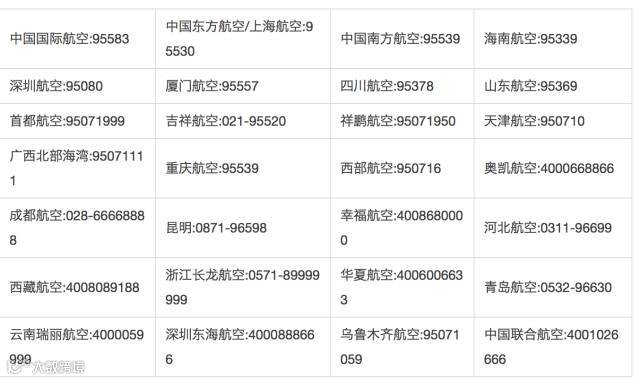各大航空公司电话: