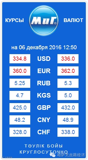 【обменный курс】2016年12月06日哈萨克斯坦坚戈汇率