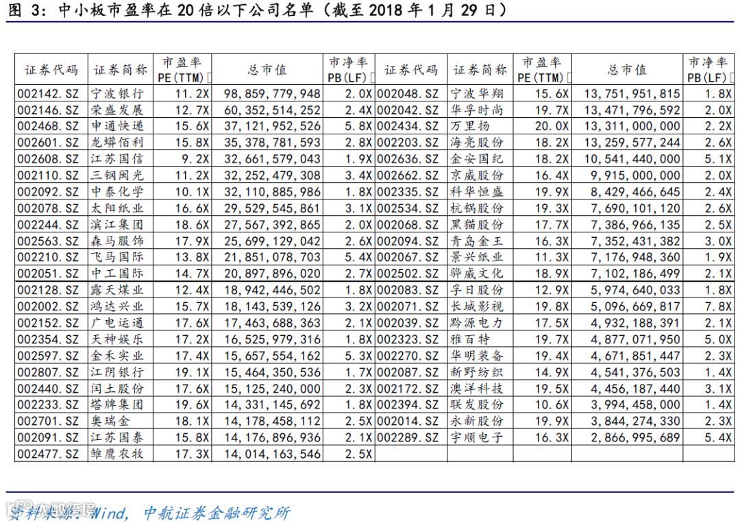 中小板的筛选条件远好于创业板。中小板市盈率在20倍以下的公司达到45家,且市值规模在百亿以上的公司达到28家,这些企业在各个领域的龙头地位更家突出,更加符合蓝筹、价值的风格。