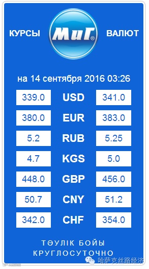 【обменный курс】2016年9月14日哈萨克斯坦坚戈汇率