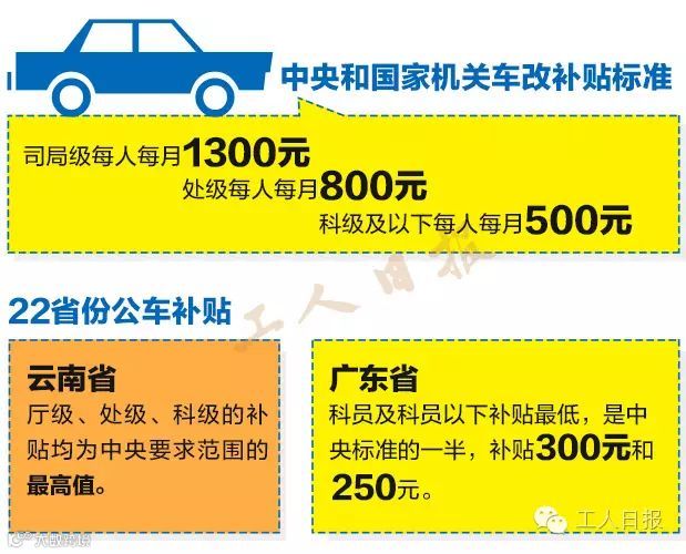 从目前公布的22地公车补贴来看,云南、广西、贵州均是补贴“顶格”,是司局级1300元标准的150%。值得一提的是云南省,厅级、处级、科级的补贴均为中央要求范围的最高值。