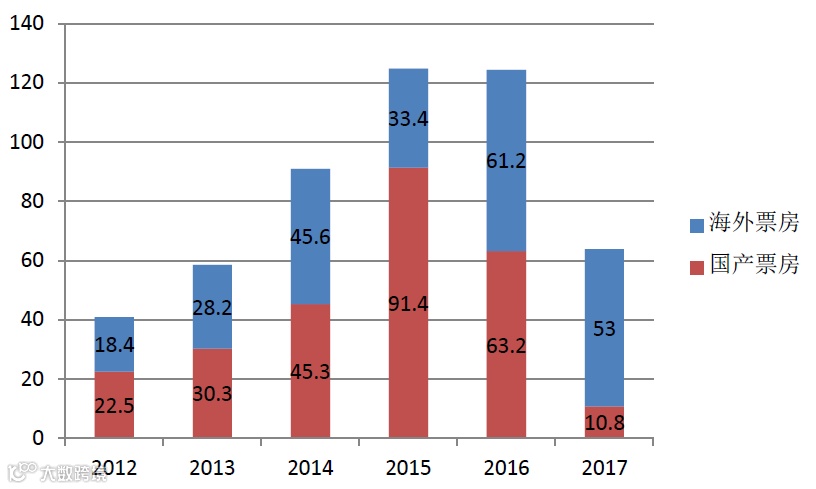 图表 2: 2012-2017年暑期档市场情况(2017年数据统计为6.1-7.13)(单位:亿元)