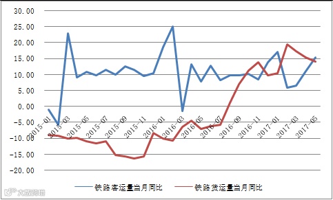 根据铁路5月份经营数据,客运量同比增加15.3%,货运量同比增加14%。虽然货运增幅有所收窄,从趋势上看依旧延续了2016年8月以来的正增长。我们认为由于基数上升的原因,下半年铁路货运同比增幅可能进一步收窄,但铁路回暖的态势不会发生根本改变,基本面仍然持续向好。