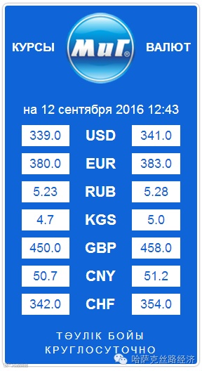 【обменный курс】2016年9月12日哈萨克斯坦坚戈汇率