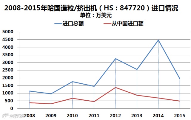 2015年哈国造粒/挤出机(847720)进口数据 |