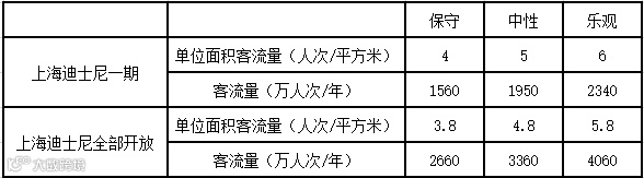 参照迪士尼在香港和东京的运营情况,东京迪士尼2016年客流量3000万人次,园区面积201万平方米,单位面积客流量14.93人次/平方米,香港迪士尼2016年客流量610万人次,园区面积126万平方米,单位面积客流量4.84人次/平方米,上海位于长三角地区,并辐射江苏、浙江等经济发达省份,我们估算,在运营成熟之后,上海迪士尼一期年客流量将达到1950万人次,按照保守估计,年客流量也会达到1560万人次。