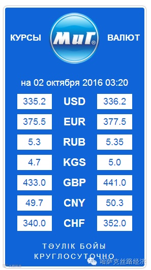 【обменный курс】2016年10月02日哈萨克斯坦坚戈汇率