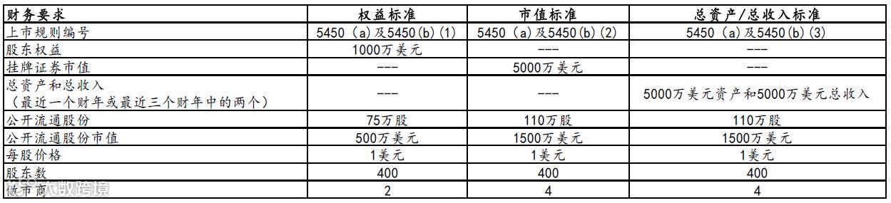 图1:纳斯达克全球精选市场和全球市场保留上市资格标准