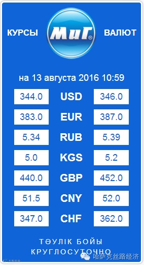 【обменный курс】2016年8月13日哈萨克斯坦坚戈汇率