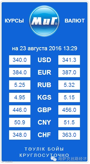 【обменный курс】2016年8月23日哈萨克斯坦坚戈汇率