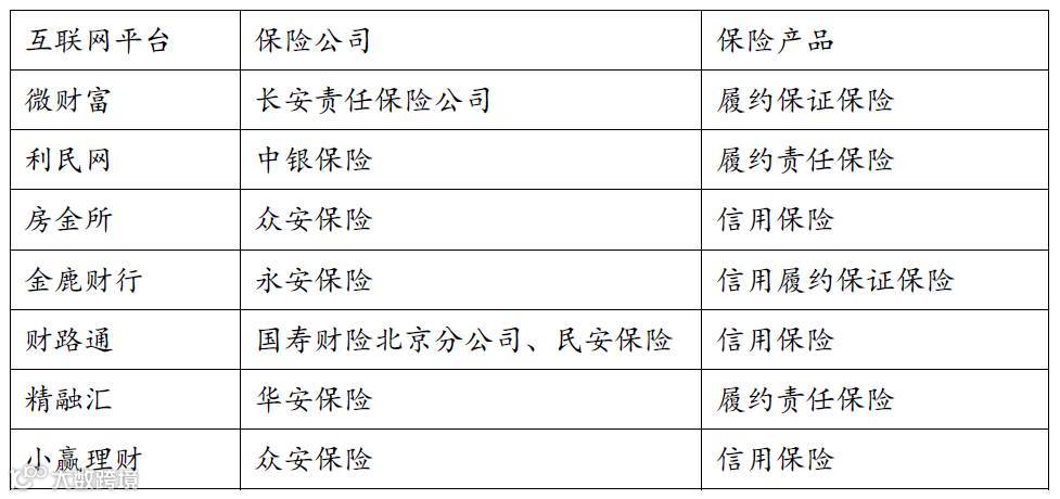 表1:部分向互联网平台提供保证保险或信用保险的保险公司