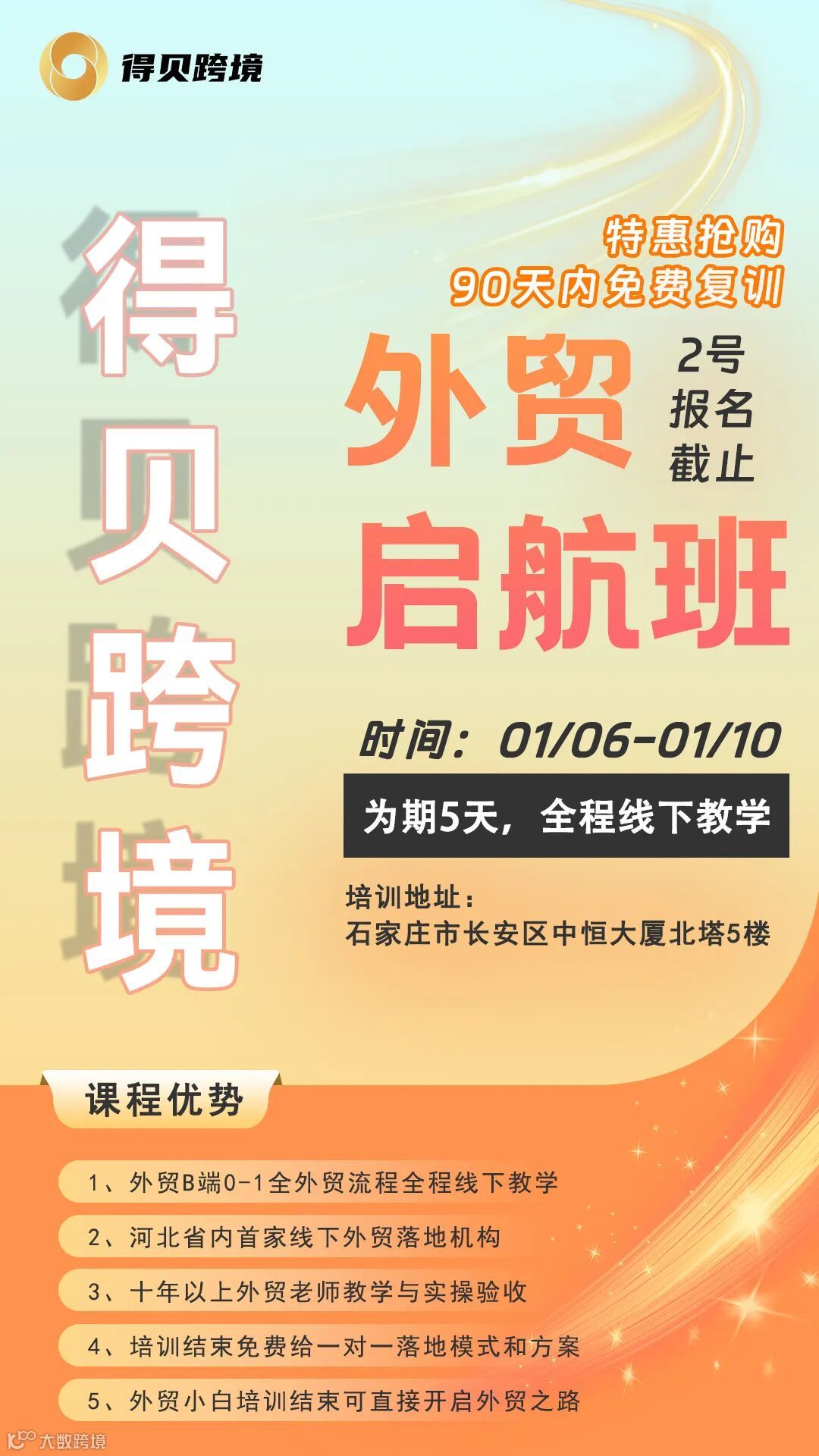 不要错过这个难得的机会,加入得贝跨境外贸启航班,开启你的外贸新篇章!