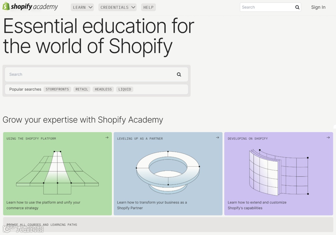 Shopify学院(https://academy.shopify.com/):提供免费的电商和广告优化课程。涵盖从店铺创建、营销策略到广告优化的全面知识。包括视频教程和实际操作案例,帮助卖家系统学习。