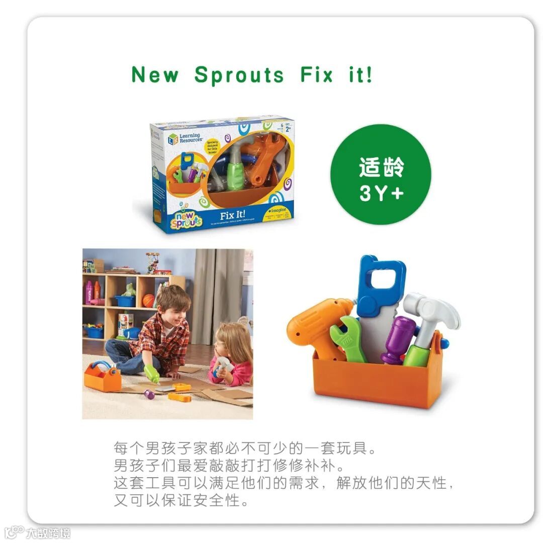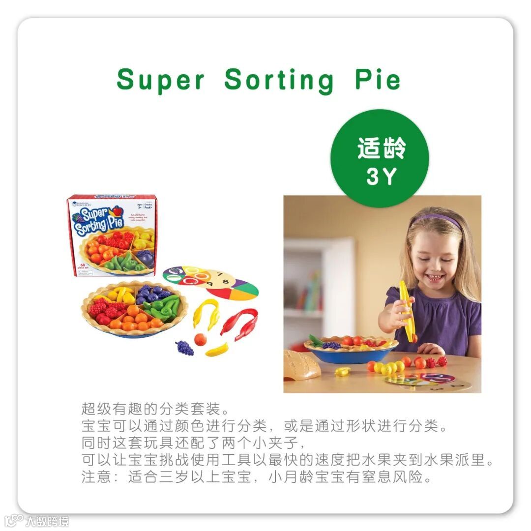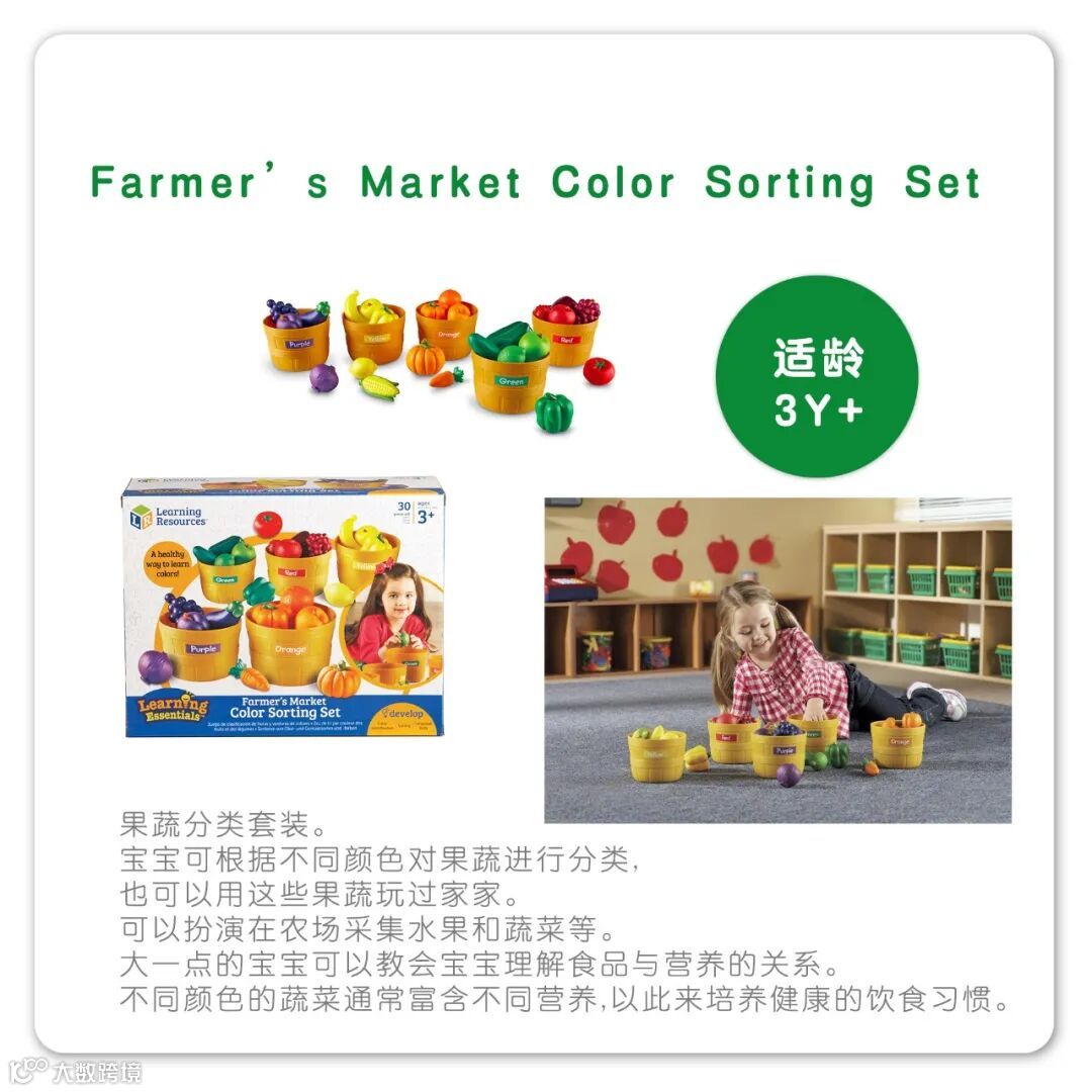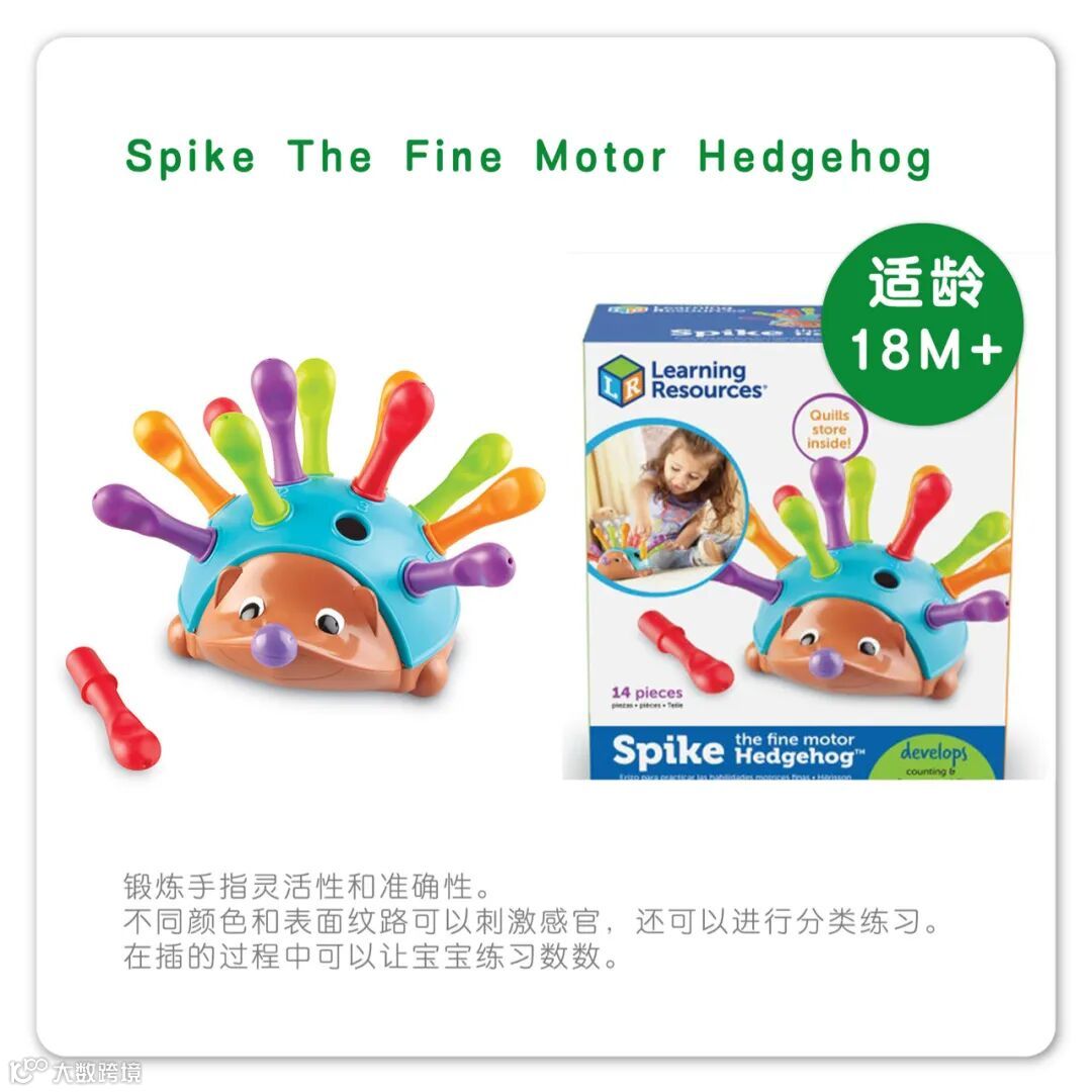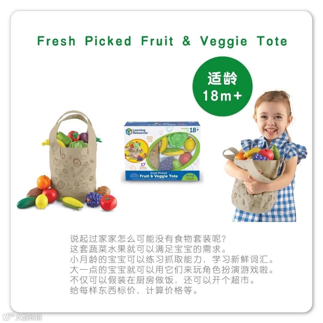 Learning Resources是全球领先的创意玩具制造商,是动态玩具和家庭游戏的开创者。该公司坐落于美国芝加哥,以帮助孩子爱上学习为目标,精心设计的1100多种玩具,在超过80个国家与地区销售,服务于家庭、幼儿园、小学以及各大早教培训机构。其产品均采用安全环保材料,获得欧盟质量安全CE认证,美国材料与实验协会认证,中国强制性3C认证。