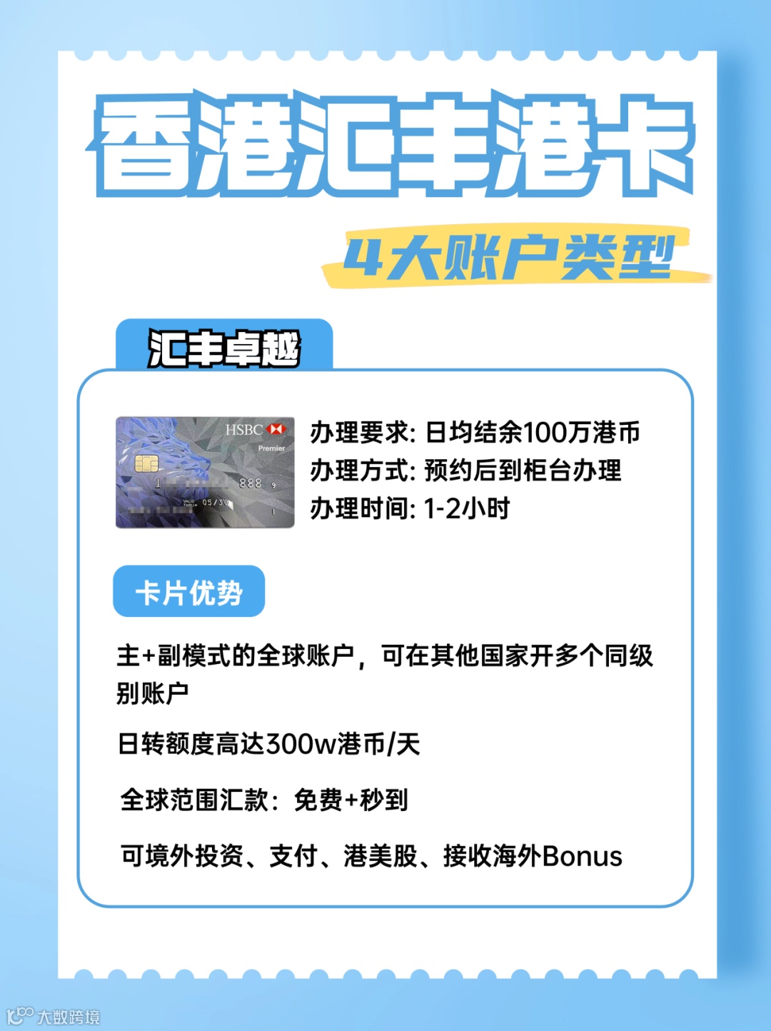 申请条件:需要先拥有一张汇丰one或者卓越的账户才可以申请,并且需维持全面理财总值达到港币780万元或以上,否则会收取相应的管理费。